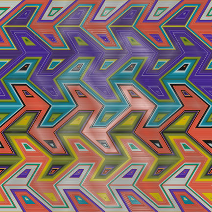 As composições se organizam em zigue-zagues repetidos, mas nunca idênticos: um padrão em constante mutação que traduz o movimento do tempo, o fluxo das energias e a multiplicidade da experiência contemporânea. O espectador é conduzido por percursos que parecem oscilar entre ordem e caos, sugerindo que a realidade, em sua complexidade, é sempre transitória e instável.